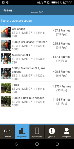 Все результаты, полученные нами при тестировании смартфона в самых свежих версиях популярных бенчмарков, мы для удобства свели в таблицы. В таблицу обычно добавляется несколько других аппаратов из различных сегментов, также протестированных на аналогичных последних версиях бенчмарков (это делается лишь для наглядной оценки полученных сухих цифр). К сожалению, в рамках одного сравнения нельзя представить результаты из разных версий бенчмарков, поэтому «за кадром» остаются многие достойные и актуальные модели — по причине того, что они в свое время проходили «полосу препятствий» на предыдущих версиях тестовых программ.