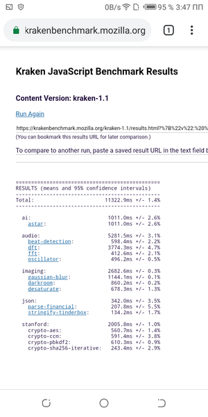 | Mozilla Kraken (мс, меньше — лучше) | 11323 | 15931 | 11431 | 16739 | 11910 |