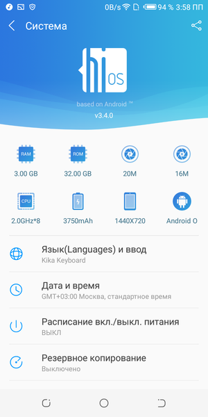 В качестве программной платформы во всех современных смартфонах Tecno используется собственная оболочка hiOS. В данной модели установлена третья версия на основе Android 8.1, хотя в том же Camon 11 уже можно увидеть четвертую версию интерфейса. Впрочем, заметных, бросающихся в глаза различий между этими версиями нет.