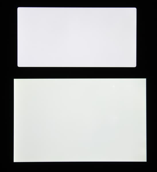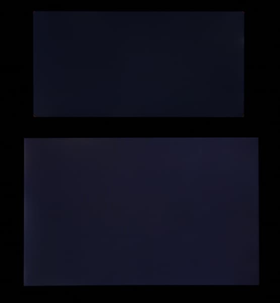 При перпендикулярном взгляде равномерность черного поля средняя, ближе к краю черное поле местами заметно высветляется (для наглядности подсветка установлена на максимальную яркость):