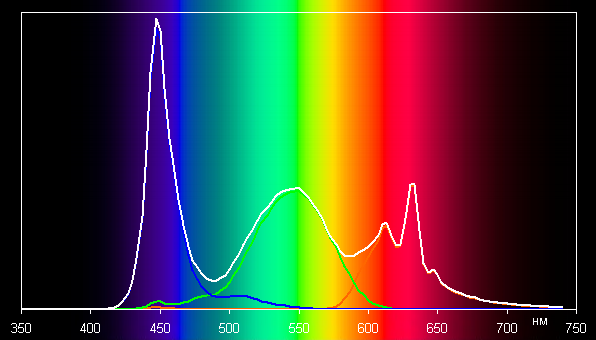 Спектры показывают, что светофильтры матрицы в умеренной степени подмешивают компоненты друг к другу: