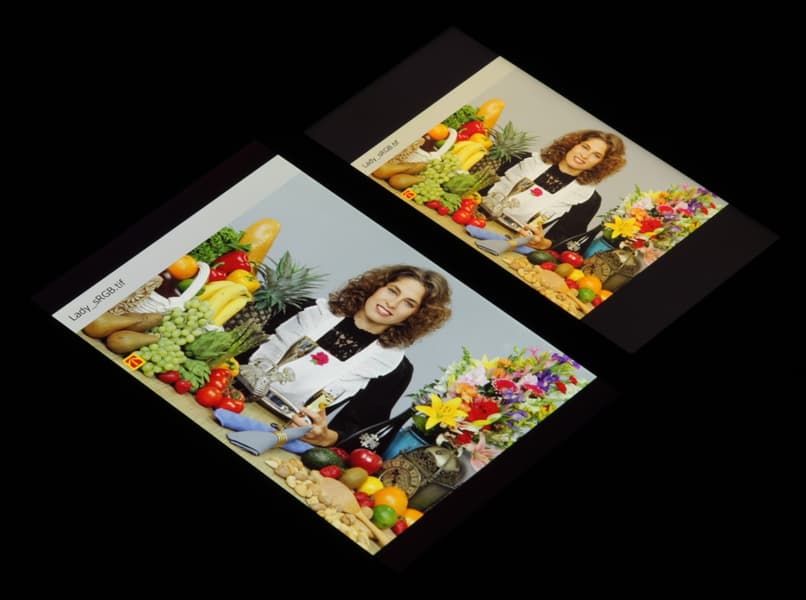 Экран имеет хорошие углы обзора без значительного сдвига цветов даже при больших отклонениях взгляда от перпендикуляра к экрану и без инвертирования (кроме самых-самых темных при отклонении по одной диагонали) оттенков. Для сравнения приведем фотографии, на которых на экраны Tecno Camon X и Nexus 7 выведены одинаковые изображения, при этом яркость экранов изначально установлена примерно на 200 кд/м², а цветовой баланс на фотоаппарате принудительно переключен на 6500 К.