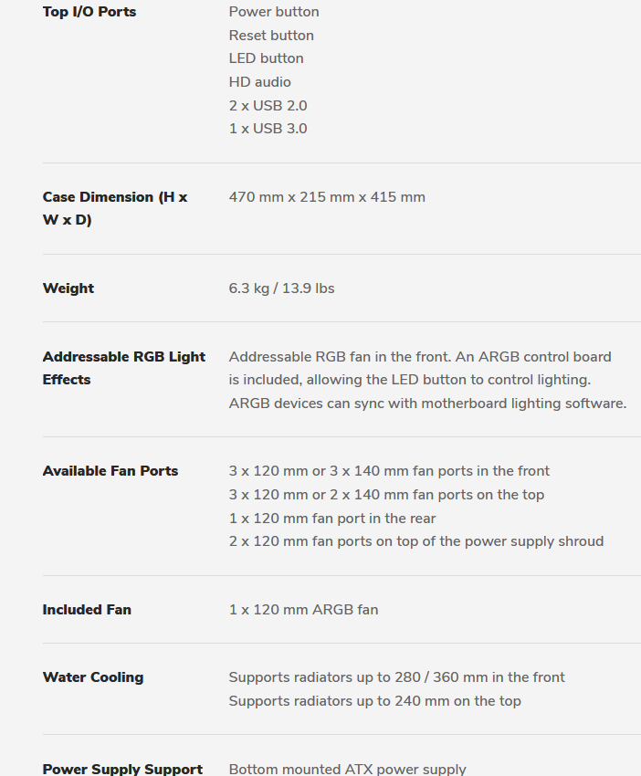 При изготовлении корпуса использована сталь с толщиной 0.7мм, ввиду чего вся конструкция получилось очень прочной, а корпус достаточно тяжёлым. Прозрачная стенка изготовлена из качественного закалённого стекла, с толщиной около 3мм. Приятным бонусом будет являться встроенный контроллер ARGB подсветки, и предустановленный, тихий 120мм вентилятор с ARGB подсветкой.