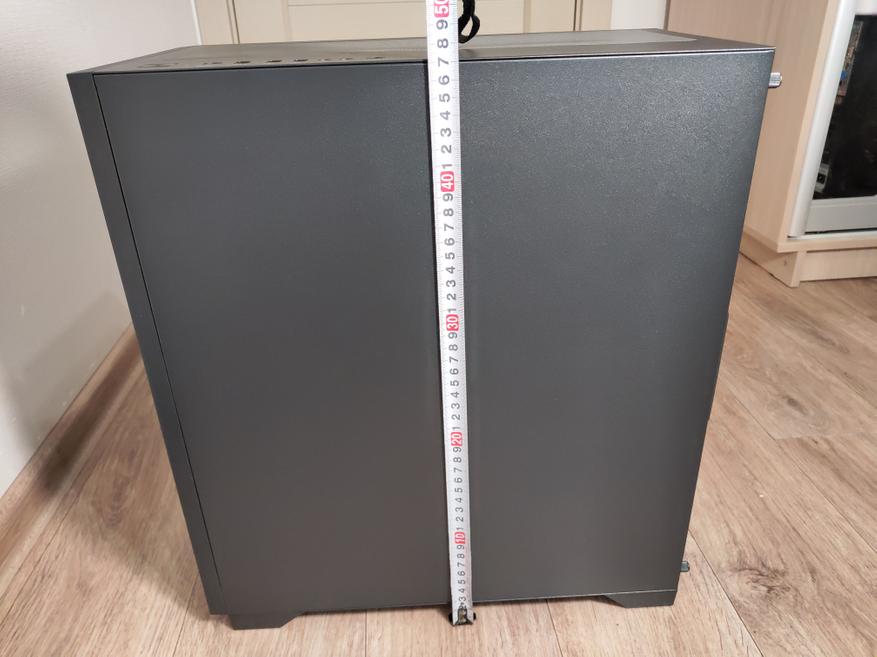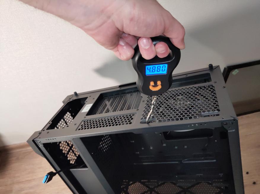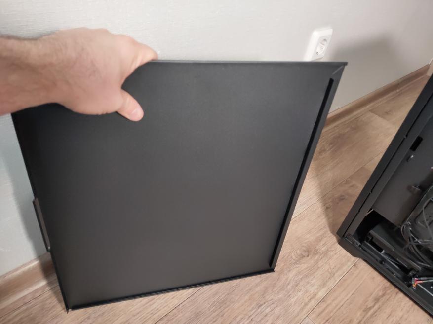 Без стеклянной стенки корпус весит около 4.9 кг, и это достаточно хорошее значение, говорящее о том, что корпус изготовлен из достаточно толстой стали (по современным меркам).
