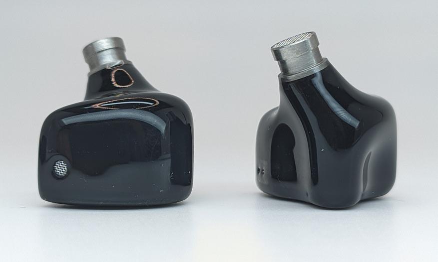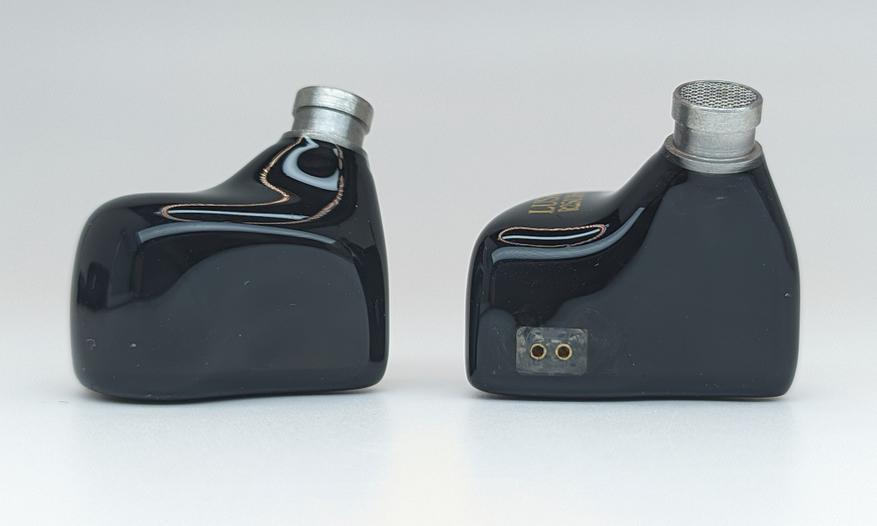 2-pin разъемы для подключения кабеля вровень с корпусом, компенсационные отверстия на боковой грани наушников прикрытые сетками. Габариты корпуса — 24 мм в длину, 19 мм в ширину, 15 мм в высоту (толщину) корпуса и 22 мм в высоту вместе со звуководом.