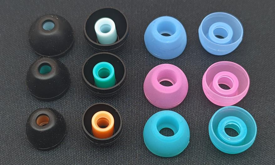 Хорошо подошли сторонние силиконовые «липкие» насадки реплика Sony FX11 и насадки с широкими звуководами из набора с 15 парами. Ссылки на эти насадки оставлю в комментариях. Они меня выручают почти со всеми наушниками, если появляются какие-то вопросы в посадке.