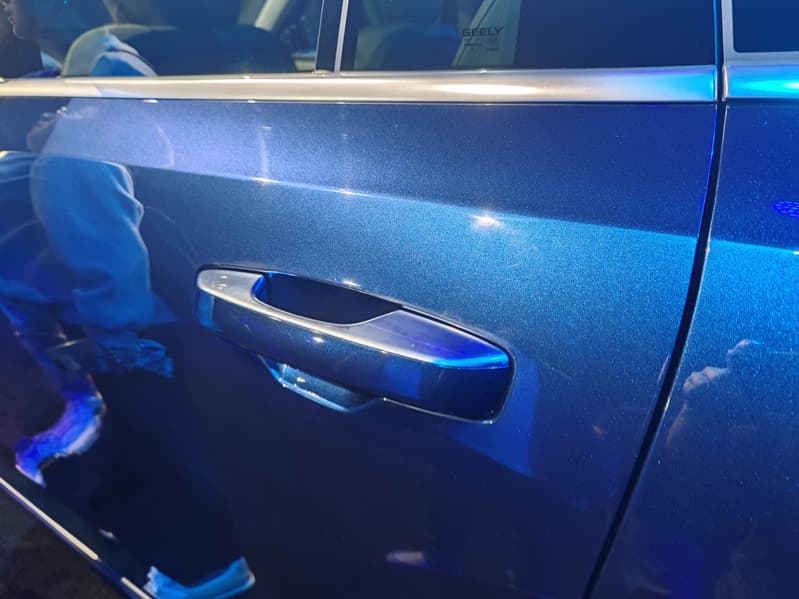 Новый Galaxy M9 выполнен в фирменной стилистике бренда Ripple Aesthetic (волнообразный стиль). В передней части выделяется фирменная закрытая решётка радиатора семейства Geely Galaxy, можно также отметить светодиодные световые полосы, проходящие через всю переднюю и заднюю оптику. Два вертикальных воздуховода по бокам переднего бампера помогают снизить сопротивление воздуха и улучшают аэродинамику. Также есть активная решётка воздухозаборника, которая открывается для охлаждения при низких скоростях и закрывается для снижения сопротивления при высоких скоростях. Важной особенностью является лазерный радар, размещенный над лобовым стеклом — он является ключевым элементом передовой системы помощи водителю Qianli Haohan. Интересно, что ручки дверей классические — под естественный хват: компания не стала в своей статусной флагманской модели использовать решение с выдвижными ручками, которое используется сейчас даже в бюджетных автомобилях.