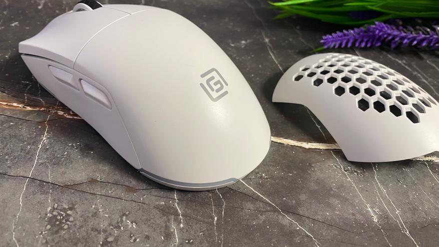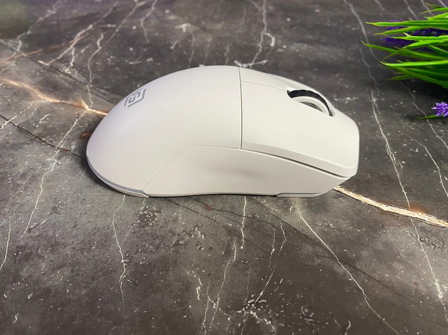 Беспроводная мышь Оклик 900GMW представлена в черном и белом исполнении. Данная модель мыши может и выглядит скромно, но зарекомендовала себя, как игровая периферия на каждый день. Мышка имеет симметричный внешний вид и может быть использована как левой, так и правой рукой, но для максимального удобства, все-таки пользоваться данной моделью мыши лучше правой рукой, из-за того, что на левой стороне корпуса располагаются дополнительные кнопки, которые можно запрограммировать на выполнения необходимой команды. На верхней части располагаются только 2 основные кнопка и колесико прокрутки, которое возвышается над корпусом и имеет прорезиненное покрытие. На правой стороне нет управляющих кнопок. Задняя часть корпуса мышки немного приподнята для обеспечения опоры для ладони и предотвращения нагрузки на кисть. Задняя часть корпуса имеет съемную панель и при необходимости её можно заменить на более игровую с перфорацией (в виде сот), но стоит быть осторожнее, так как под панелью можем наблюдать основную плату и все компоненты. Панель держится достаточно плотно и фиксируется при помощи магнитов. Под панелью располагается посадочное место для беспроводного адаптера. Мышка представлена как беспроводная, но при желании её можно использовать и по кабелю USB, для этого на передней части имеется разъем USB Type-C.