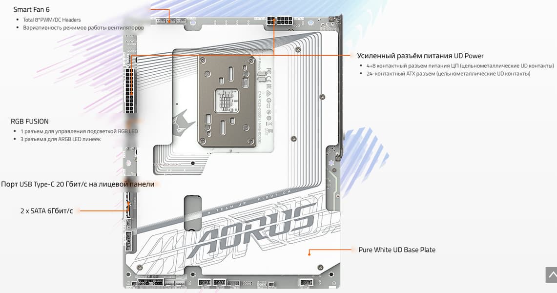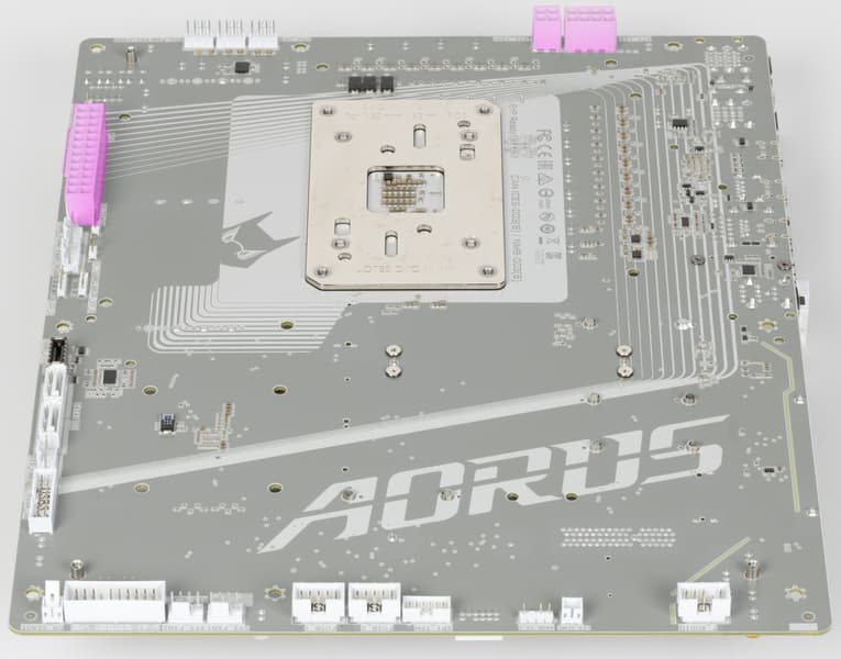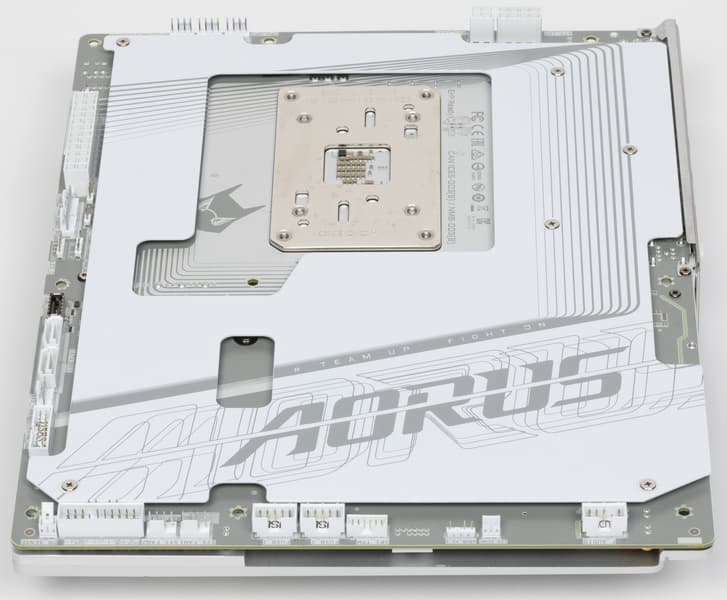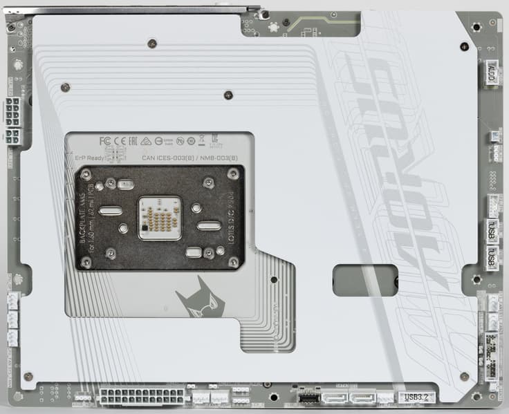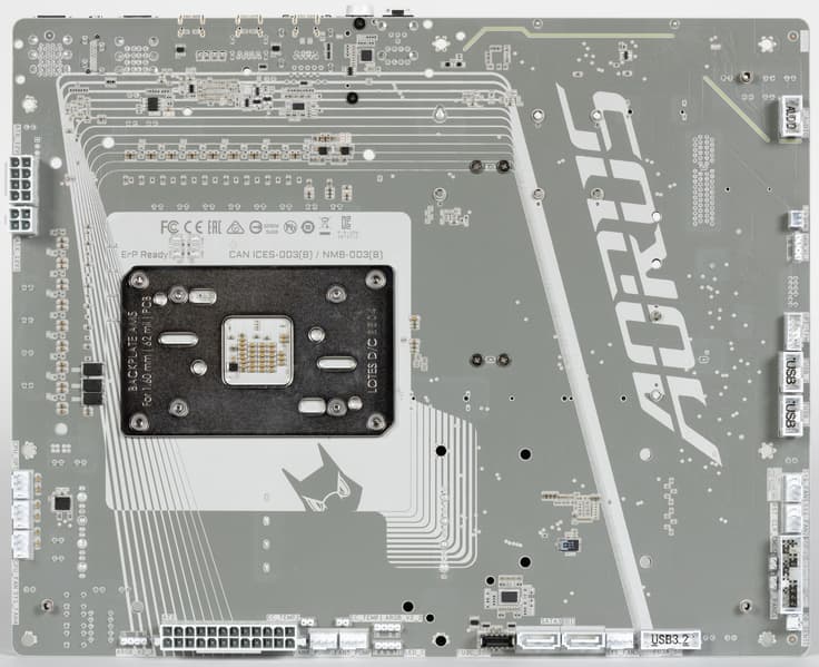 Материнская плата имеет бэкплейт с оборотной стороны, который служит элементом защиты платы и для жесткости конструкции.