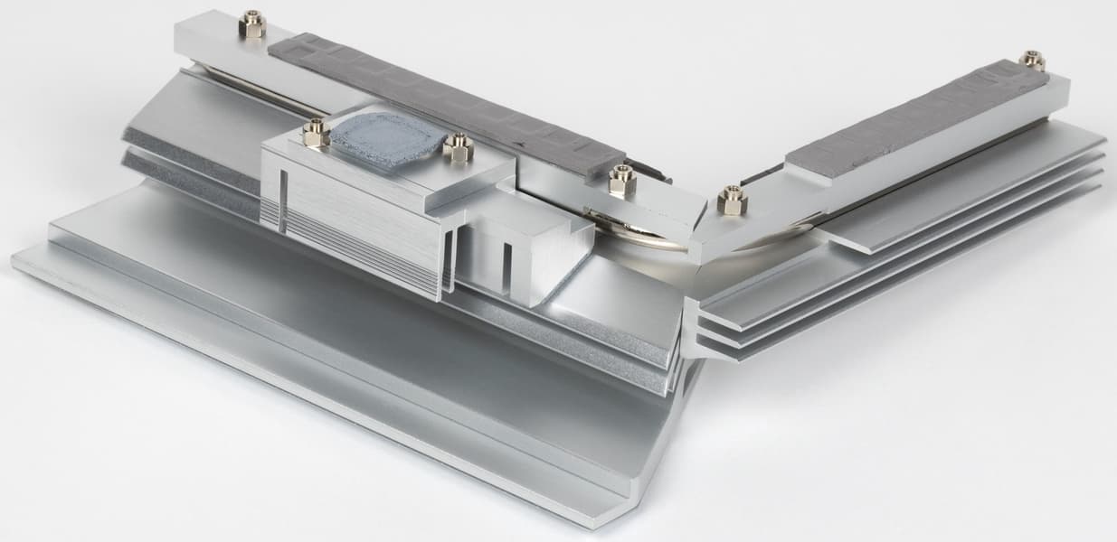 Две группы силовых преобразователей имеют свои раздельные радиаторы, соединенные тепловой трубкой.