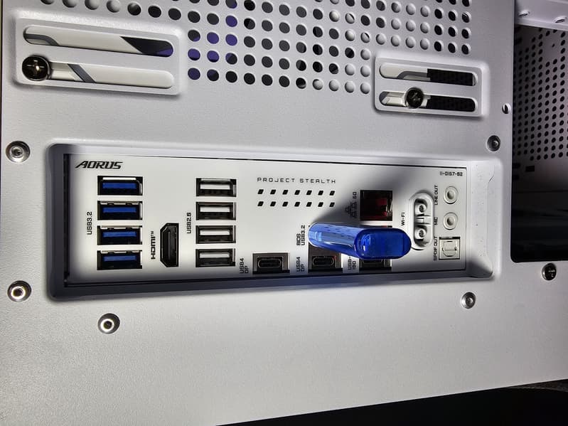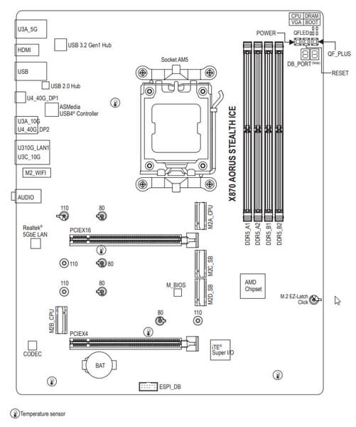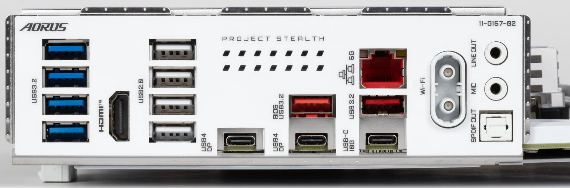 У Gigabyte X870 Aorus Stealth Ice имеется 20 портов USB разных видов, включая два самых быстрых на сегодня порта USB4 и один уже не самый быстрый USB 3.2 Gen2×2. Оба порта USB4 обеспечивают скорость передачи данных до 40 Гбит/с и поддерживают вывод изображения в формате DP.
