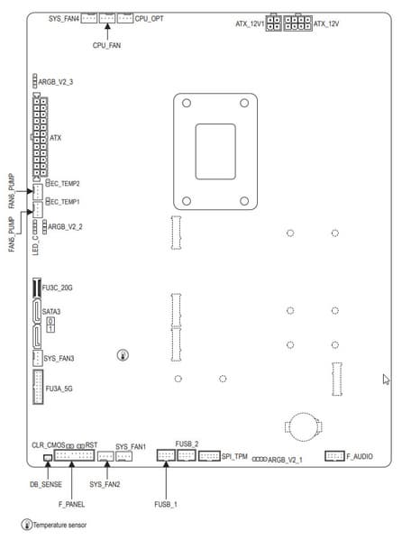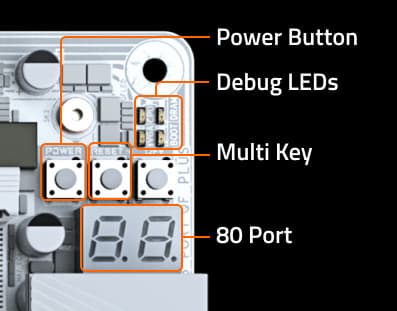| Прочие внутренние элементы | 24-контактный разъем питания ATX 1 8-контактный разъем питания EPS12V 1 4-контактный разъем питания EPS12V 1 слот M.2 (E-key), занят адаптером беспроводных сетей 1 разъем для подключения порта USB 3.2 Gen2x2 Type-C 1 разъем для подключения 2 портов USB 3.2 Gen1 2 разъема для подключения 4 портов USB 2.0 8 разъемов для подключения 4-контактных вентиляторов и помп ЖСО 1 разъем для подключения неадресуемой RGB-ленты 3 разъема для подключения адресуемой ARGB-ленты 1 разъем аудио для передней панели корпуса 1 разъем для сброса CMOS 1 разъем TPM для систем безопасности 2 разъема для термодатчиков 1 разъем для подключения управления с передней панели корпуса 1 кнопка включения питания Power 1 кнопка перезагрузки Reset 1 кнопка перепрошивки BIOS — Q-Flash Plus |