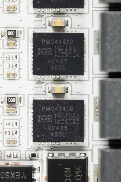 Каждая фаза VCore и SoC имеет по транзисторной сборке PMC41410 от Infineon (ex-IOR) (до 80А).