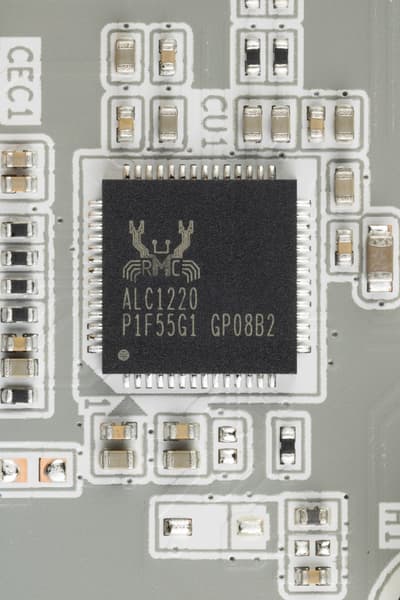 Мы знаем, что уже достаточно давно в большинстве современных материнских платах звуком заведовал аудиокодек Realtek ALC1220. Он обеспечивает вывод звука по схемам до 7.1 с разрешением до 24 бит / 192 кГц. В данном случае схема 7.1 реализована через S/PDIF, а также с участием гнезд на корпусе (поэтому их следует подключить к матплате).