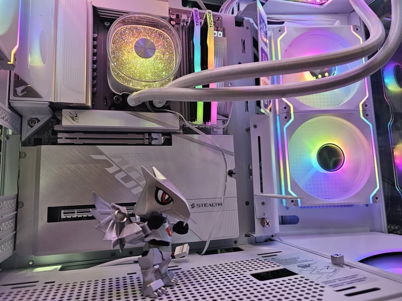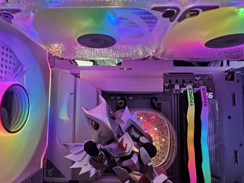 В арсенале этой модели также есть 2 порта SATA и 8 разъемов для вентиляторов. Система питания процессора весьма мощная. Плата имеет систему охлаждения для каждого потенциально греющегося элемента, включая накопители в слотах M.2. Сетевые возможности включают проводной контроллер 5 Гбит/с и беспроводной Wi-Fi 7 + Bluetooth 5.4. В числе плюсов платы можно упомянуть широкие возможности для подключения дополнительных RGB-устройств.