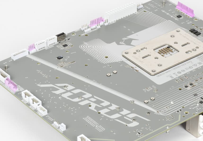 Общеизвестно, что у Gigabyte кроме собственного бренда есть суббренд Aorus, в который компания относит все самые навороченные и флагманские продукты. Вот наша сегодняшняя плата относится к этой серии — Gigabyte X870 Aorus Stealth Ice, базируемая на AMD X870. Плата относится к серии Stealth, которая подразумевает оборотное расположение всех основных контактов и гнезд.