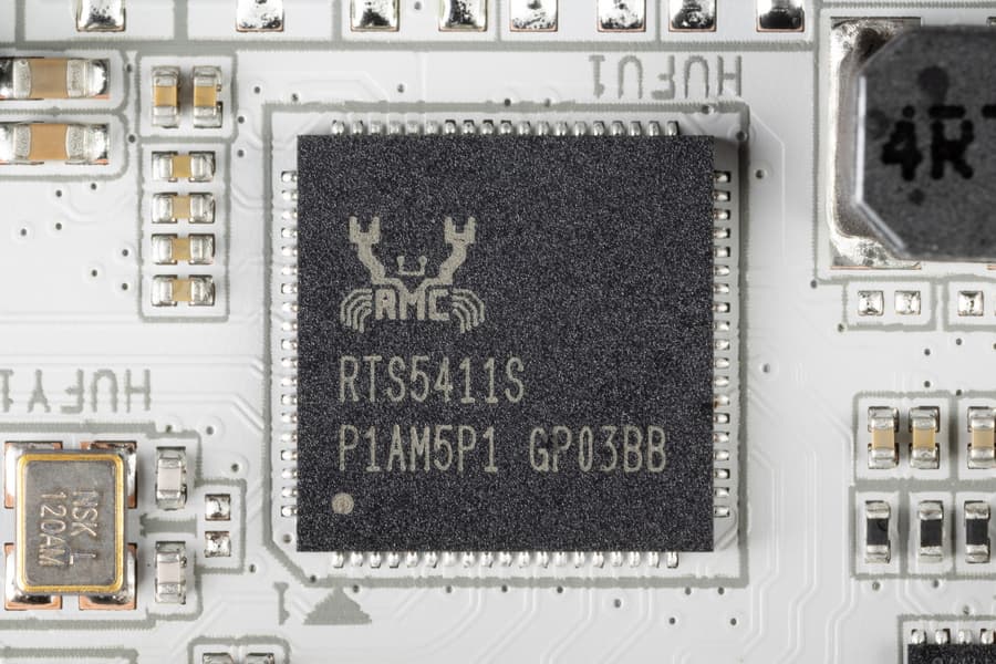- 6 портов USB 3.2 Gen1: 2 реализованы через X870 и представлены внутренним разъемом на материнской плате на 2 порта; еще 4 реализованы через контроллер Realtek RTS5411 (на него потрачена 1 линия USB 3.2 Gen1 от CPU) и представлены на задней панели 4 портами Type-A (синие);