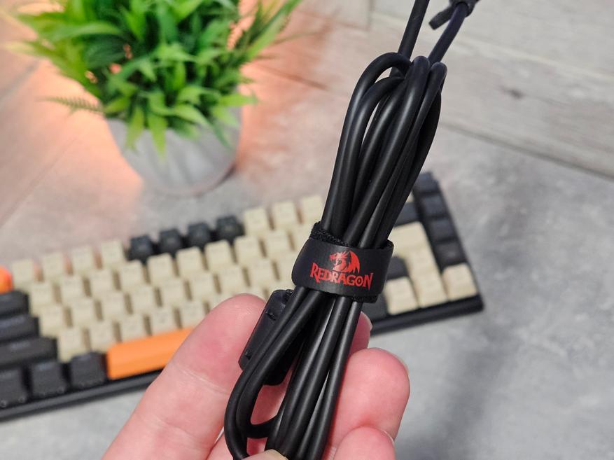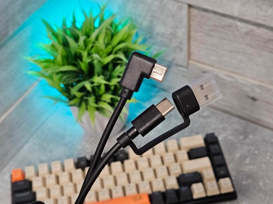 Дополнительные кейкапы можно использовать для замены или комбинирования с основными. По сути у вас есть возможность оформить себе два дизайна, если использовать полный комплект. Так же понравился кабель подключения. Разьем, который будет вставляться в клавиатуру сделан в форме буквы «Г» (то есть угловой). На нем есть встроенный брендированный ремешок. Внимание к деталям — моё почтение.