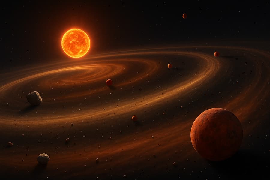 Учёные из Центра суперкомпьютерных вычислений Юлиха предложили новое объяснение структуры поясов объектов за орбитой Нептуна. Их численное моделирование показало, что необычное распределение орбит и цветов транснептуновых объектов (ТНО) можно объяснить тем, что в первые миллионы лет существования Солнечной системы мимо неё прошла другая звезда на расстоянии около 110 астрономических единиц (примерно в три раза дальше орбиты Нептуна).