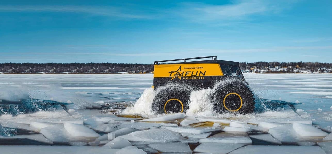 В России представлена обновлённая версия вездехода «Тайфун», разработанного для экстремальных условий. На официальном сайте говорится, что он легко проходит густой лес, тайгу, болота, глубокий снег и хрупкий лед.