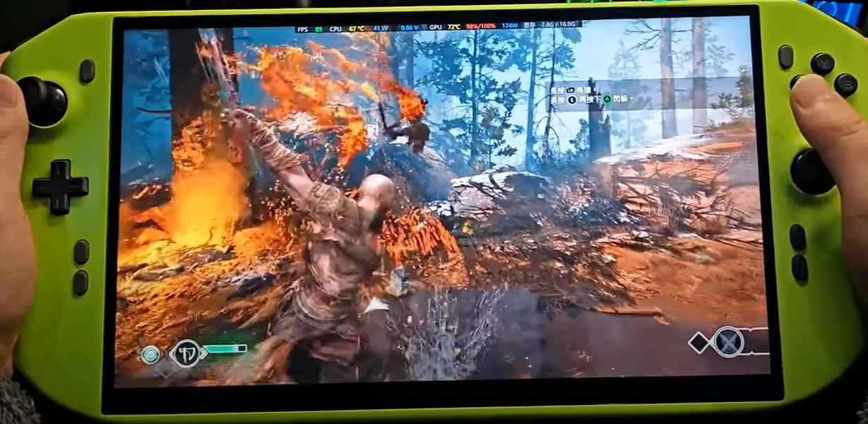 Эта портативная консоль может запустить Cyberpunk 2077 с разрешением 4K с максимально возможным качеством изображения со стабильной частотой кадров в пределах 60-70 к/с. Кроме того, портативная консоль также воспроизводит God of War с частотой 110-120 к/с.