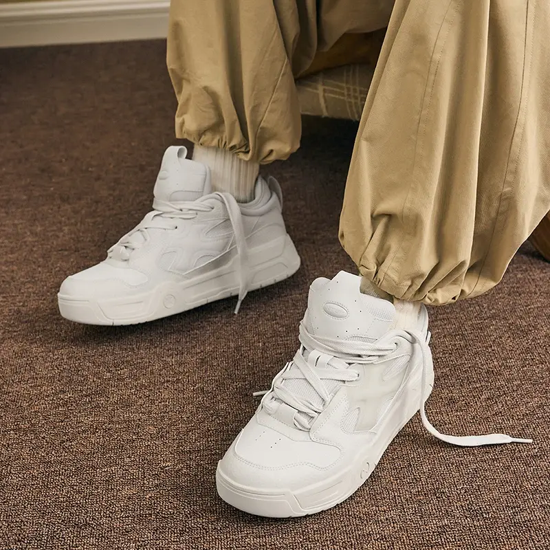 Баскетбольные кроссовки RUMDAX совмещают практичность с современными решениями для активного городского образа жизни. Верх произведен из натуральной кожи с хлопковой подкладкой и язычком (в стандартном исполнении), что обеспечивает долговечность и комфорт при длительной носке.