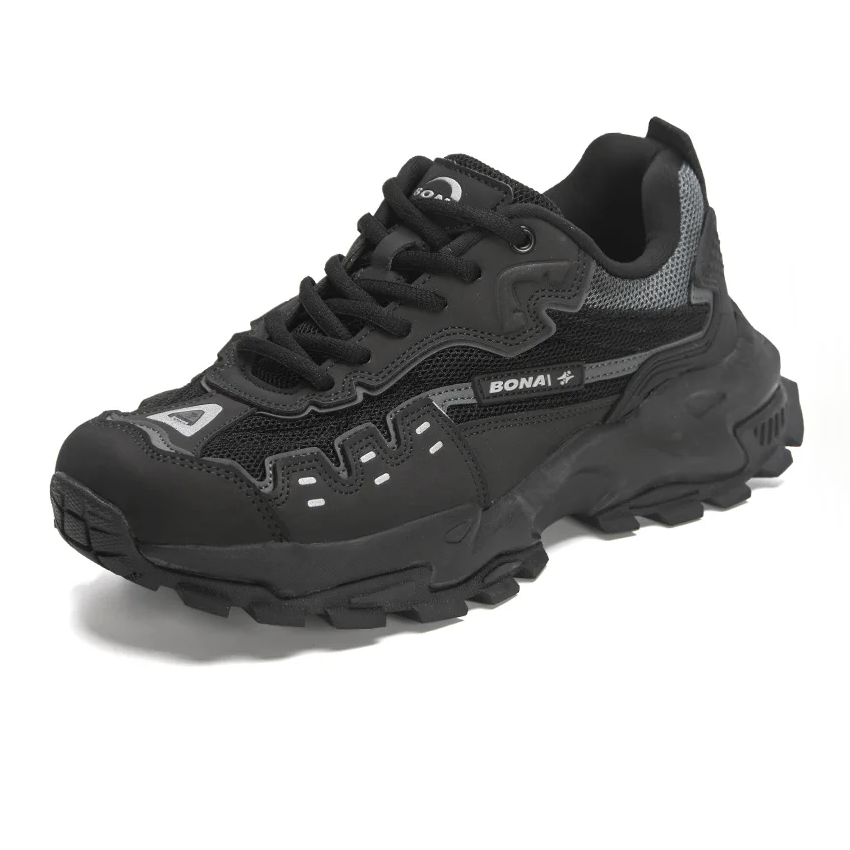 Мужские кроссовки BONA модели 37669 представляют собой интересное сочетание натуральных и синтетических материалов. Верх выполнен из спилка с тканевыми вставками, что обеспечивает хорошую воздухопроницаемость и долговечность. Полиуретановая стелька и высокая резиновая подошва создают надёжную основу для повседневного использования. Рисунок подметки позволяет уверенно перемещаться по пересеченной местности.