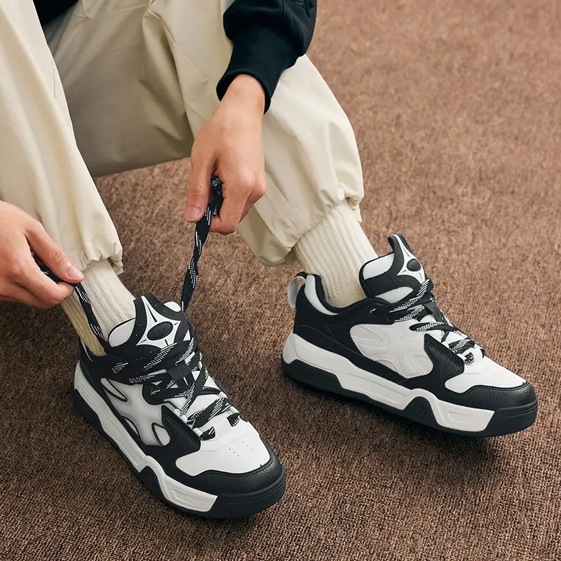Особого внимания заслуживает массивная резиновая подошва, которая гарантирует отличное сцепление и износостойкость в городских условиях. Мягкий воротник и язычок с логотипом добавляют комфорта при длительной носке, а задняя петля упрощает процесс обувания. Доступны варианты как в строгом черно-белом исполнении, так и с яркими фиолетовыми акцентами.