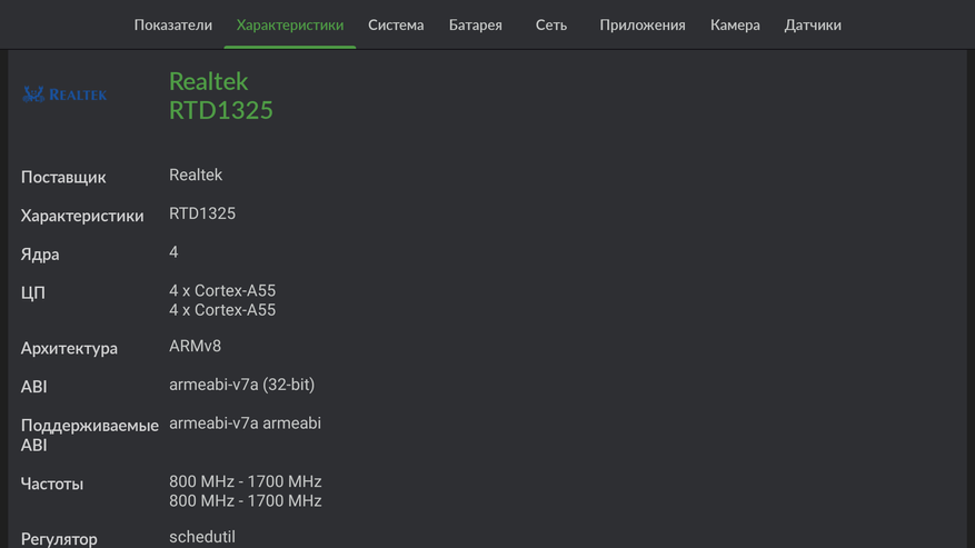 Приставка базируется RTD1325, процессоре, который впервые появился в моделях 2025 года. Это энергоэффективное четырехядерное решение на ядрах Cortex A55 с графическим ускорителем Mali-G57. Здесь есть аппаратная поддержка современных кодеков, а также поддержка функций ИИ. При этом благодаря современному техпроцессу процессор выделяет небольшое количество тепла и не страдает от перегрева. По производительности он на уровне Amlogic S905X4. Если углубится в изучение нюансов, то можно выяснить, что в вычислительной части (процессорной) он немного слабее, но в графической — более производительный.