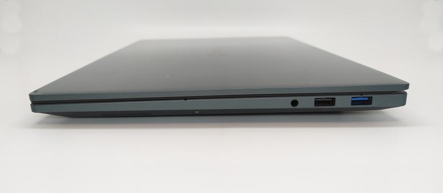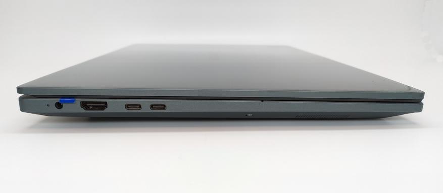 Спереди у ноутбука ничего нет, кроме выемки для зацепа верхней крышки при открытии. На левой боковой грани расположились: