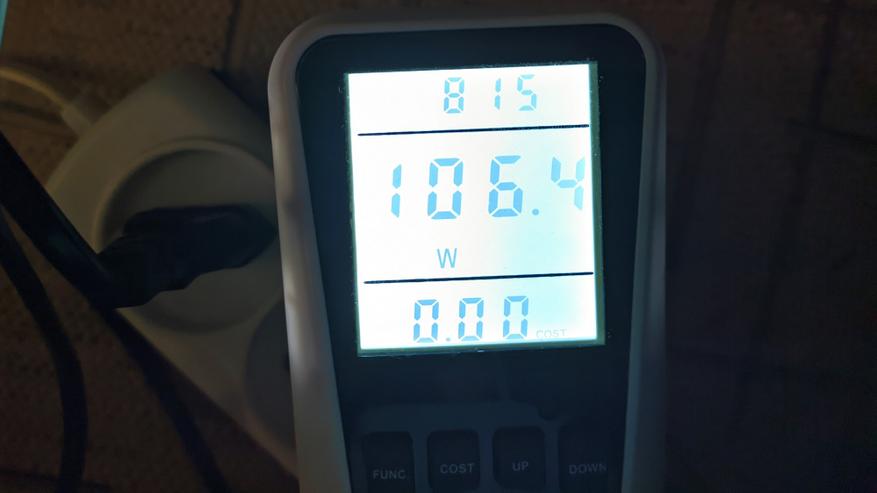 Любопытства ради я с помощью недорогого прибора посмотрел потребление энергии ноутбука из розетки. Прибор недорогой и, скорее всего, с погрешностями, но не думаю, что с большими. Я специально выкрутил все настройки в прожорливой Horizon Forbidden West на максимум и посмотрел жор энергии во всех режимах. Потребление в режиме Office показало +/- 60 ватт, в Balance — 75 ватт, а в режиме Turbo — в районе 90 ватт. При этом запустил я игру сразу в режиме Turbo, и цифры были чуть больше 90 W, а при повторном переключении на Turbo значение остановились уже на 88,9 W. Хотел узнать, сколько будет максимального потребления, и для этого я разрядил аккумулятор до 45%, также запустил в режиме Turbo игру Horizon Forbidden West, и прибор стабильно стал показывать потребление 106 ватт. В простое с включенным экраном в режиме Office ноутбук показывал чуть плавающее потребление в районе 15 ватт, но бывало и до 11 опускалось.