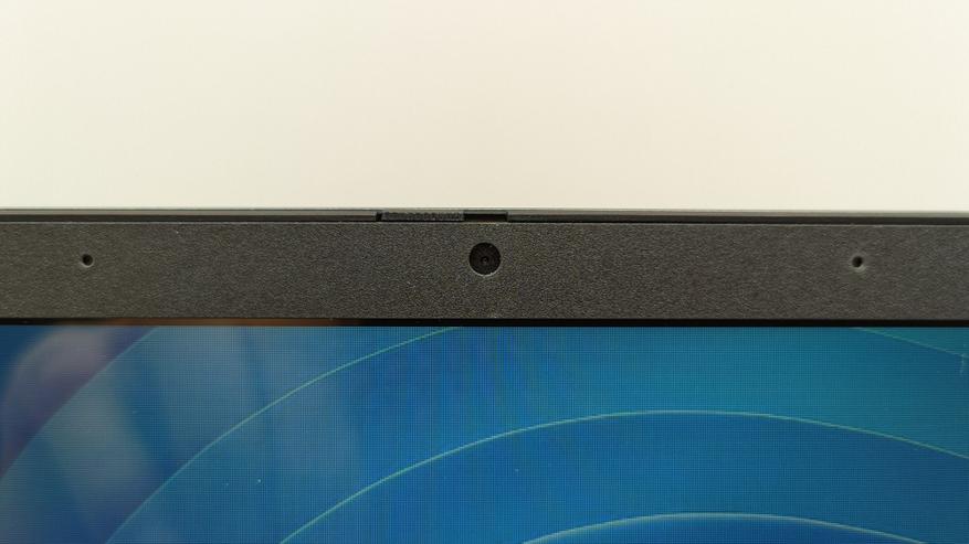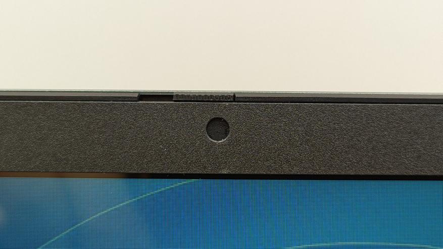 Сверху над экраном окошко камеры со шторкой и два отверстия для микрофонов. Микрофонов, похоже, два, потому что на легкое трение подушечкой пальцев по отверстию записывают оба с одинаковой громкостью, но в моно. Возможно, в сторонних программах будет звук и стерео, но в параметрах звука при тесте микрофона записалось моно.