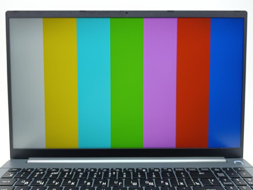 Под заводской защитной пленкой у нас матовый антибликовый экран. Экран 15,6 дюйма, с соотношением 16:9, с родным разрешением 1920х1080 пикселей, с яркостью 300 нит, цветовым охватом 98% DCI-P3 и отзывчивостью в 2 мс. В профи-режиме камеры своего смартфона я постарался приблизить цвета и яркость как можно ближе к натуральному, но на фото белый все же получился более серым, чем он есть в действительности. Засветы небольшие есть, но они практически незаметны. Битых пикселей нет. По факту экран достаточно светлый, цвета не сильно выразительные и немного блеклые. Герцовку в установленной винде изменить не получится, этот пункт вообще неактивен, и там выставлены заявленные максимальные 90 Гц. Можно сделать увеличение экрана и хотя в родном разрешении пусть и мелковато, но все-таки неплохо все видно, но при 125% пользоваться ноутбуком комфортнее.