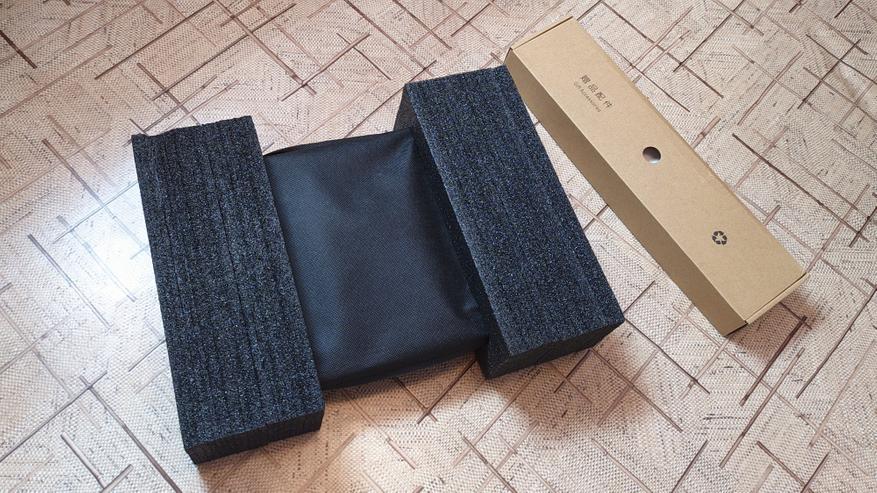 Внутри упаковочной коробки ноутбук уложен в две проставки из вспененного полиэтилена. Сам ноутбук был уложен в текстильный мешок. Внутри была отдельная коробка с инструкцией и блоком питания с кабелем. Кстати, ноутбук для первого включения нужно было подключить к сети, чтобы активировать батарею. И для этого продавец вложил в ноутбук матерчатую прокладку с соответствующей надписью. Типа подключи к розетке и тогда уже включай.