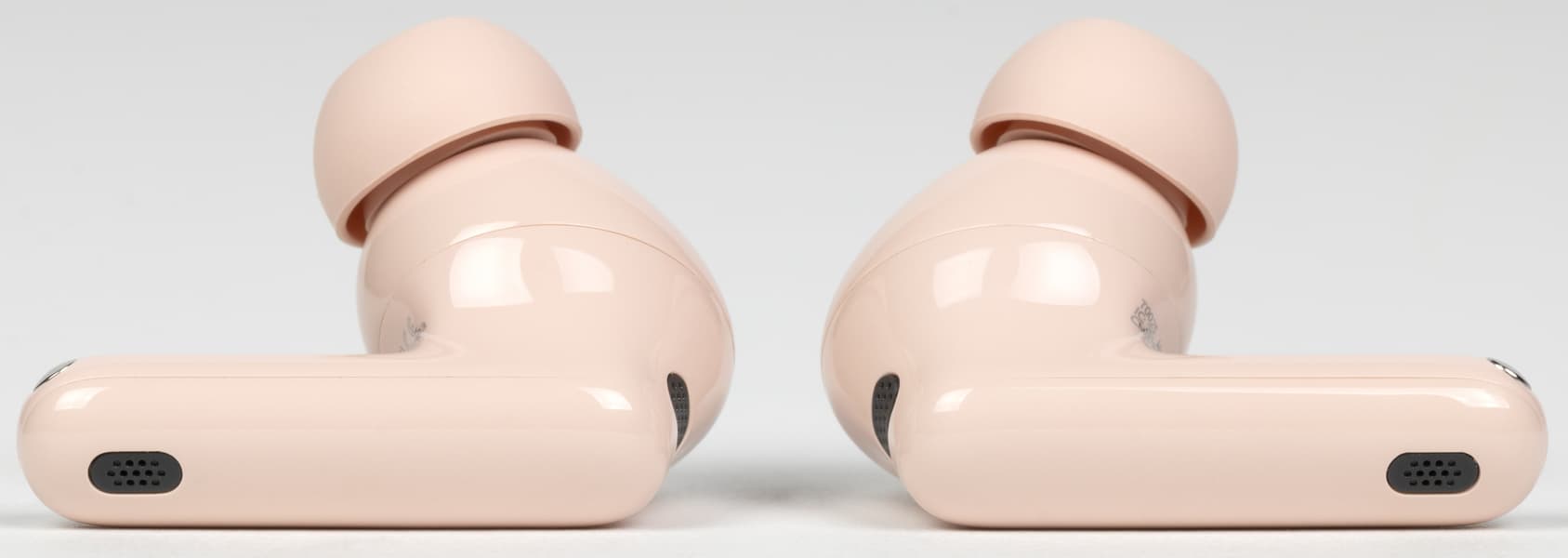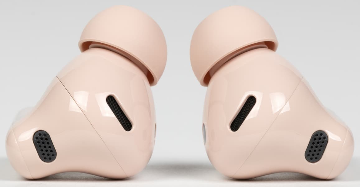 На верхнем торце «ножек» расположены внешние микрофоны системы активного шумоподавления, скрытые под черной перфорированной накладкой.