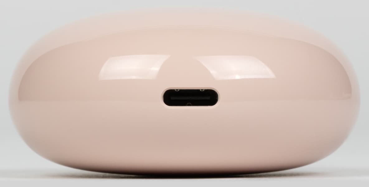 В нижней части корпуса футляра находится порт USB Type C, служащий для зарядки. Все оказавшиеся под рукой во время тестирования коннекторы помещались в него практически полностью, с приятным щелчком, но чуть неплотно — с небольшим люфтом, который хорошо заметен, но вряд ли может стать серьезной причиной для критики.