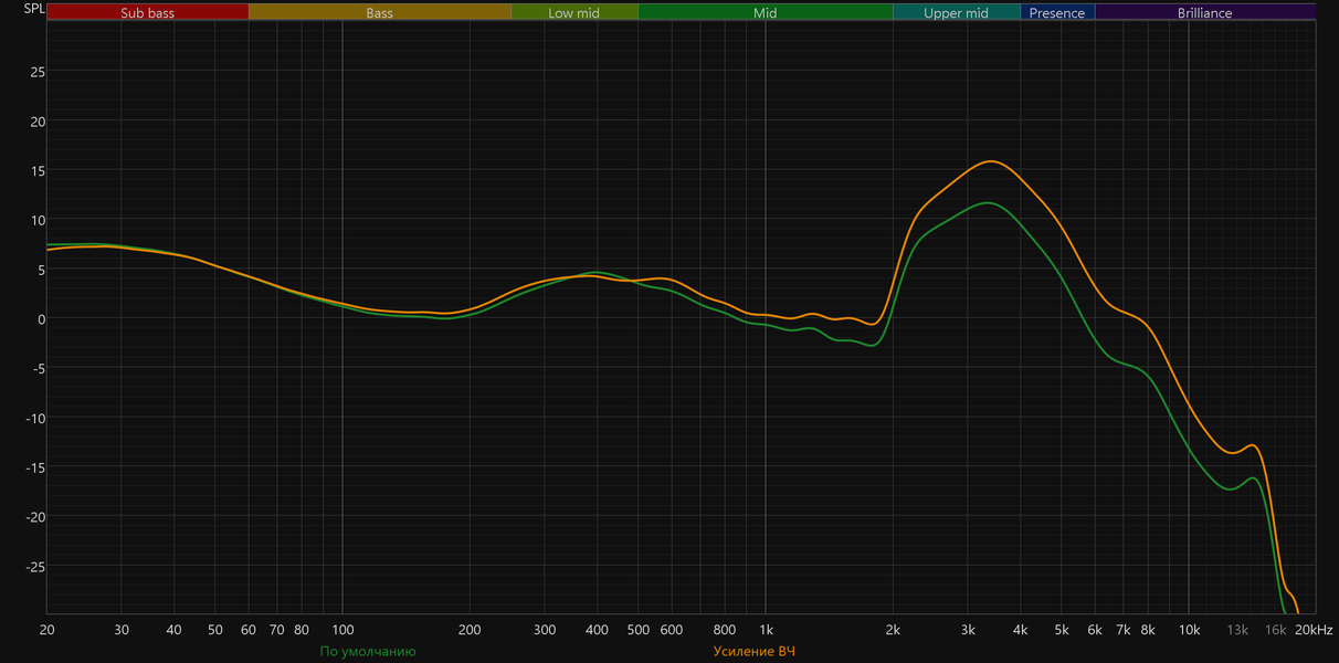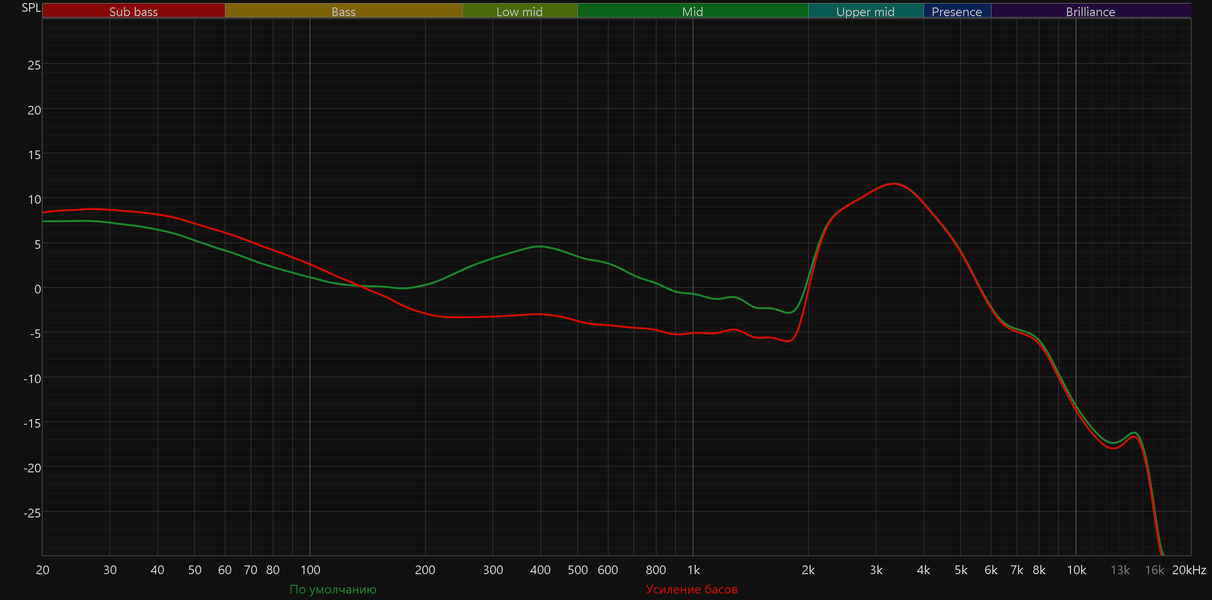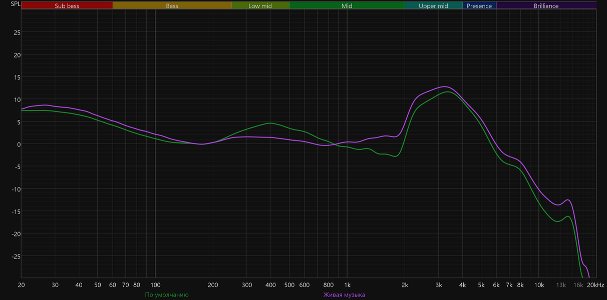 Для большей наглядности наложим график с активированным пресетом «Живая музыка» на используемую целевую кривую.