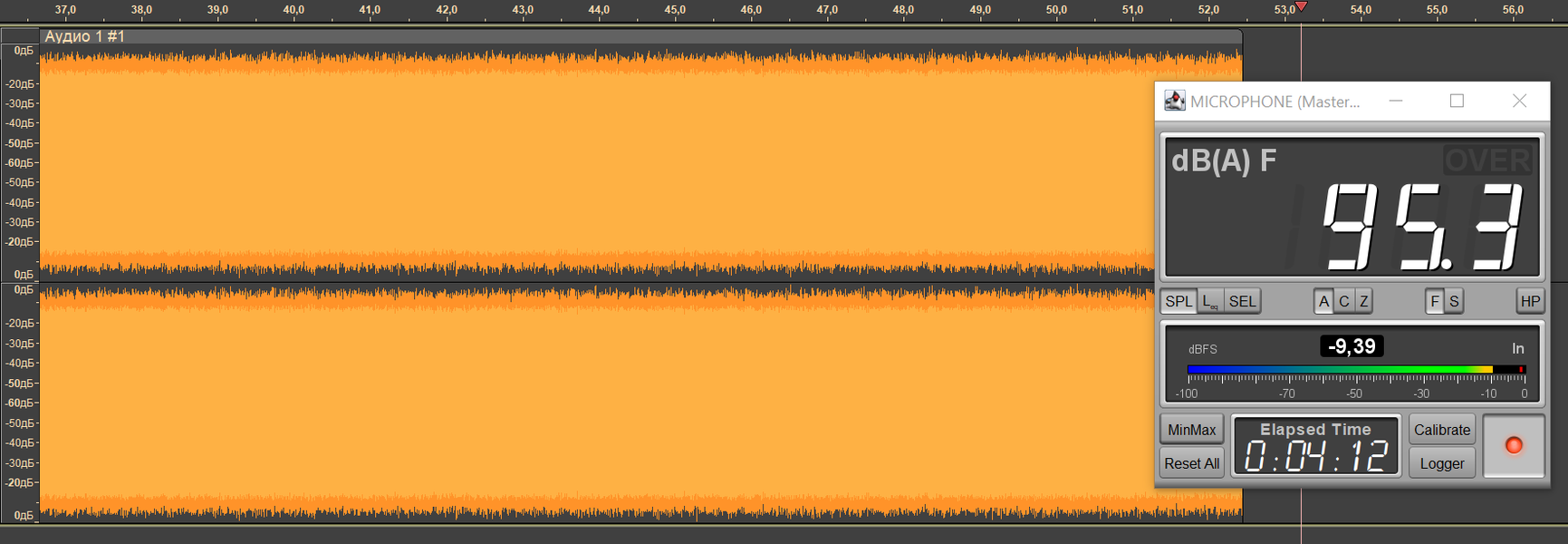 Безопасным уровнем звукового давления при прослушивании музыки считается 75 дБ, но на практике большинство слушателей предпочитает уровень 90-100 дБ. Мы транслируем в наушники белый шум, фиксируя уровень SPL в районе 95 дБ, сразу после старта воспроизведения запускаем запись сигнала с измерительного стенда — по длине получившегося трека легко понять, сколько проработал каждый из наушников.