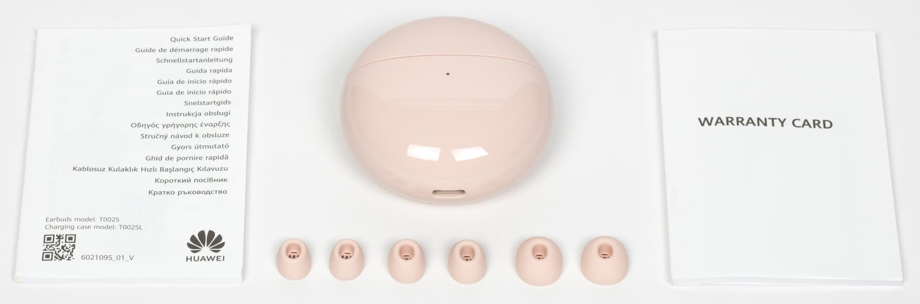 Комплект поставки довольно заметно изменился. Наушники в кейсе и документация, естественно, по-прежнему на месте. Подобрать подходящую пару силиконовых насадок пользователю будет чуть проще — их теперь не три, а четыре (одна установлена на наушники по умолчанию). А вот зарядный кабель Huawei теперь в коробку не кладет — и мы, как ни странно, продолжаем это решение скорее приветствовать, чем критиковать. Лучше уж полное отсутствие кабеля, чем короткий «огрызок», вложенный по принципу «лишь бы был» и в лучшем случае отправляющийся на дальнюю полку, а в худшем — сразу в мусорное ведро.