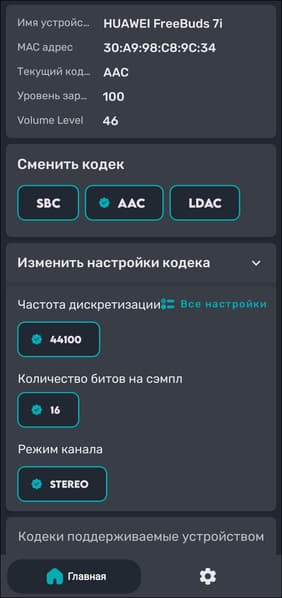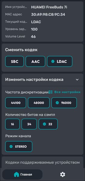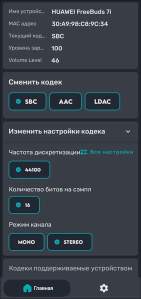 Доступность и режимы кодеков мы дополнительно проверили с помощью утилиты Bluetooth Codec Changer.