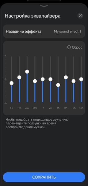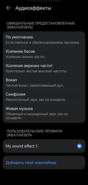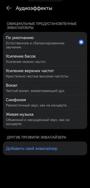 Количество доступных звуковых профилей не изменилось — их по-прежнему шесть. Правда, вместо симпатичных иконок теперь используется лаконичный текстовый список. В прошлой версии появилась возможность создавать свои пресеты с помощью 10-полосного эквалайзера, которая раньше была лишь в серии Pro — эта опция по-прежнему доступна, чему можно только порадоваться.