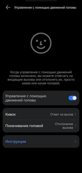 С появлением датчика положения головы появилась и возможность управления вызовами с помощью движений: кивок — для принятия, покачивание в стороны — для отклонения. Работает это вполне надежно, но только если пользователь сидит или стоит. В положении лежа датчик начинает ошибаться, что, впрочем, предсказуемо. Опробовать функцию и решить, нужна ли она вам, можно прямо в приложении.