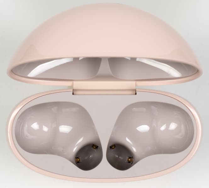 Вот уже четыре поколения подряд наушники серии «i» сохраняют форму кейса, напоминающую морскую гальку. Но на этот раз корпус стал заметно более округлым. Размеры при этом вновь невелики, а задняя панель сделана плоской, потому носить футляр в кармане по-прежнему удобно. Оформление наушников изменилось чуть более радикально — об этом мы подробнее поговорим ниже.