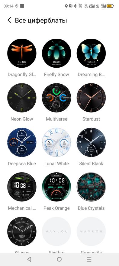 Дисплей яркий, с хорошими углами обзора и качеством изображения. Циферблаты есть, но не настолько много, сколько хотелось бы, но все же выбрать что-то достойное можно.