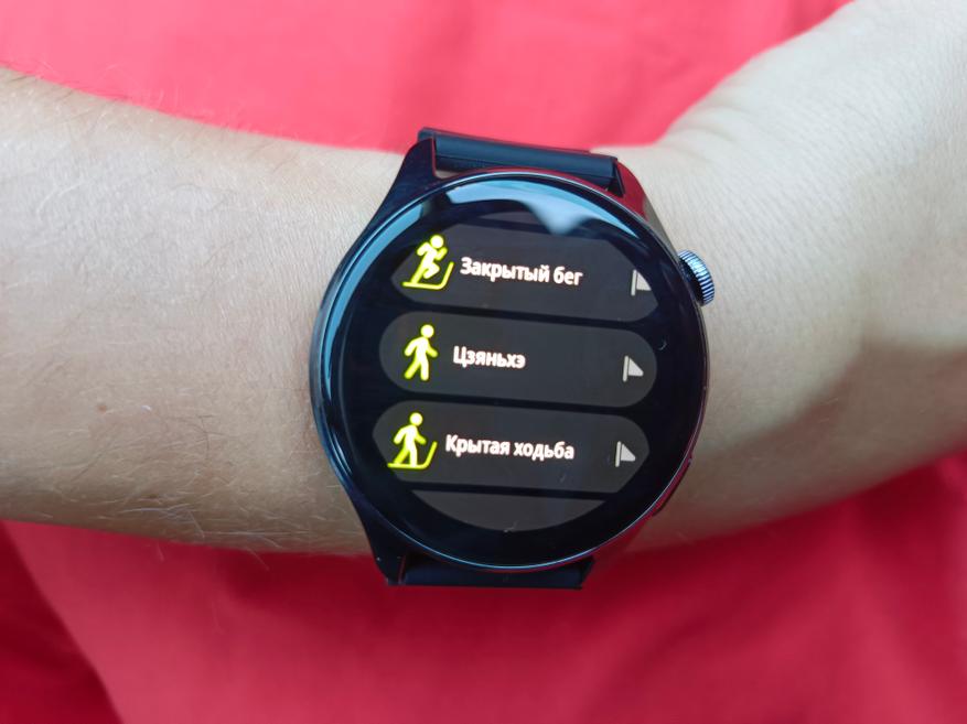 Есть множество различных режимов тренировок, где есть самые распространенные виды спорта: бег, ходьба, велосипед. А вот плавания здесь нет, так как здесь влагозащита всего 1 АТМ, а это значит, что в этих смарт-часах можно будет прогуляться под дождем и помыть руки, но не плавать в бассейне или длительно купаться в ванной.
