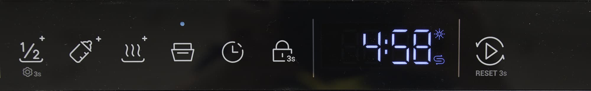 Реализованы семь программ мойки, есть функция «3 в 1» для корректного использования и полного растворения моющих таблеток, опция «Сушка+», слегка удлиняющая цикл и уменьшающая количество влаги на посуде, а также половинная загрузка, чтобы экономить воду и электричество при небольшом количестве посуде и не накапливать ее. Контролировать работу машины помогает «красный луч»: во время мойки или сушки модель проецирует на пол красную точку. Отсрочить старт можно на срок до 24 часов.