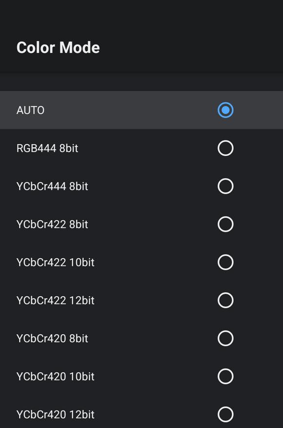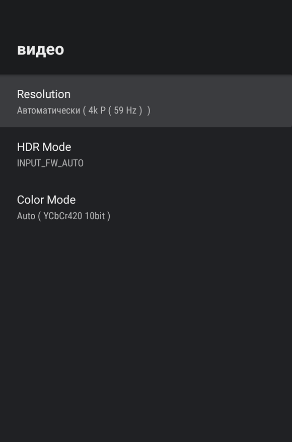 Поддерживается программный афтофреймрейт. Приложения, которые умеют переключать частоту телевизора будут это делать. Например, проигрыватели Vimu Media Player и Kodi, а также приложение для просмотра цифровых каналов TiviMate IPTV Player. Если ваш телевизор умеет плавно переключать частоты, то приставка эту функцию поддерживает. Если телевизор не поддерживает, будет переключение с кратковременным уходом в черный экран. Приставка поддерживает воспроизведение HDR форматов: HDR10, HDR10+ и HLG. Dolby Vision не поддерживается, он автоматически конвертируется в HDR (кроме профиля 5). Есть адаптивный режим, который автоматически переключит телевизор в нужный формат, в зависимости от воспроизводимого контента (нужно выбрать Input FW Auto). Можно выбрать настройки цветового пространства в ручном режиме.