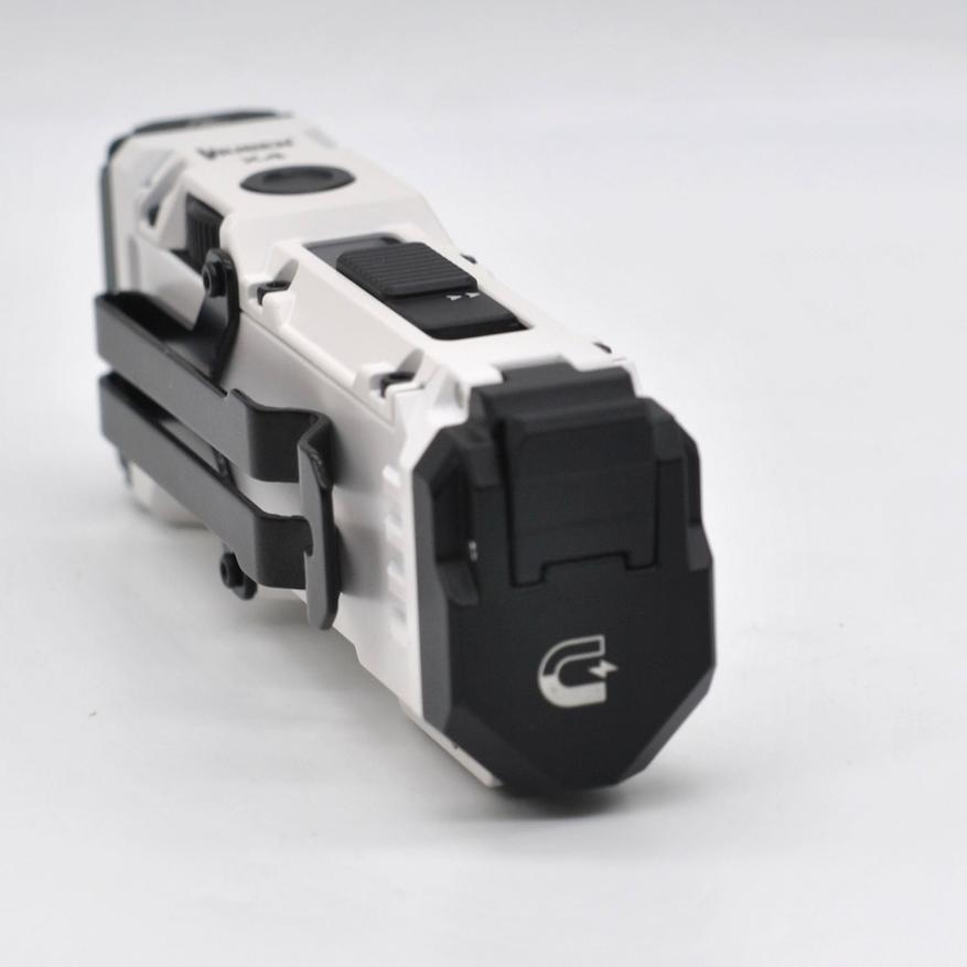 Фонарь отдаленно напоминает классические цилиндрические варианты, тут скорее про хай-тек. Рай для любителей покрутить руками всякие кнопочки, не фонарик, а фиджет для рук. Материал — окрашенный алюминиевый сплав. Клипса стальная широкая, посадка 4,5 см.
