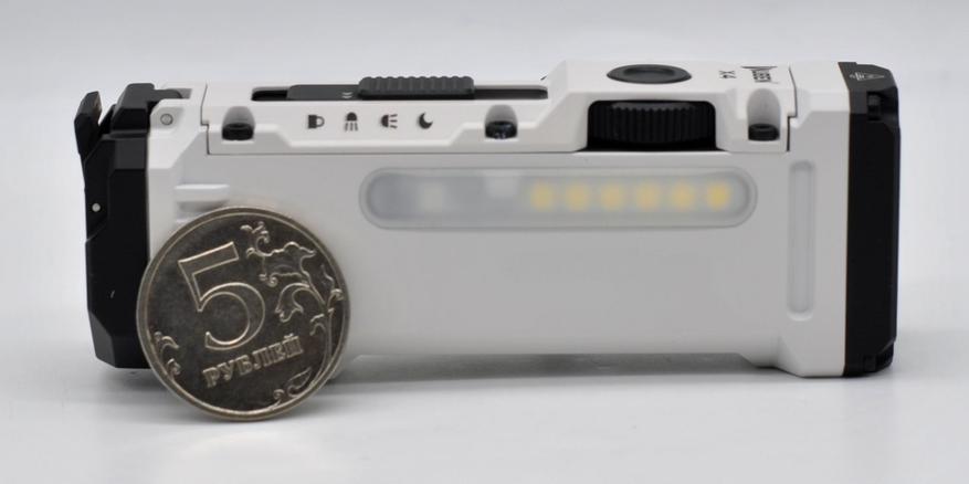 Несмотря на обилие прямых линий и острых граней, фонарь руку не наминает, хват удобный. «Крутилка» энкодера удобно находится под большим пальцем.