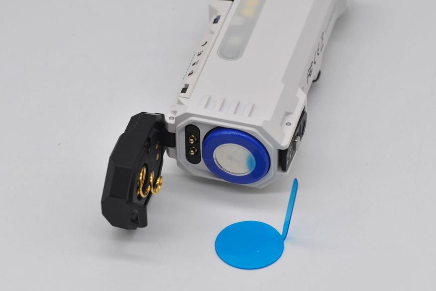 Сначала сдвижным переключателем выбираем режим: блокировка — боковой свет (рассеянный теплый или 7 цветов) — основной свет со ступенчатой регуляцией яркости энкодером — мунлайт (основной свет). В мунлайте становится открыт порт для зарядки Type-C. Хвостовая кнопка активирует турбо, строб (2 клика) или мунлайт. Совместно основной и боковой свет не работают (что логично).